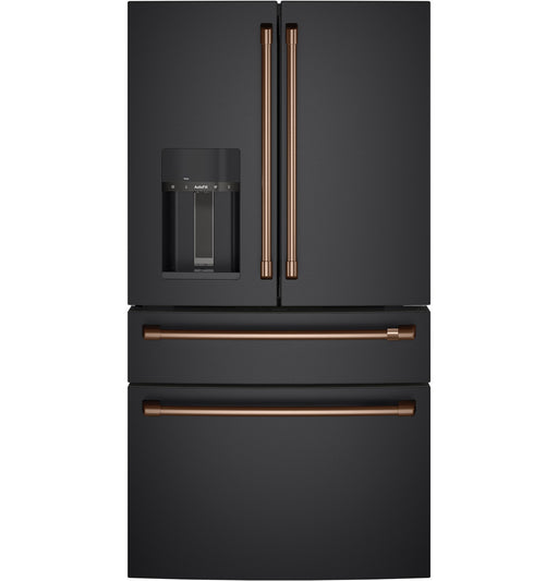 {"ACCESSORIES":{"Optional Kits":"CXQB4H4PNBT - Brushed BlackCXQB4H4PNBZ - Brushed BronzeCXQB4H4PNCU - Brushed CopperCXQB4H4PNSS - Brushed StainlessCXQB4H4PNCG - Brushed BrassCXQB4H4PNFB - Flat Black"},"APPEARANCE":{"Case Color":"Black","Color Appearance":"Matte Black","Door Stops":"Yes","Door Swing":"French Door","Exterior Design":"Contoured Doors","Handle":"CAFÉ™","Handle Color":"Brushed Stainless","Handle Design":"CAFÉ™ Pro","Hidden Door Hinge(s)":"Yes","Textured Steel Case":"Case Only - Dark Gray"},"CAPACITY":{"Convertible Drawer Capacity":"3.62 cu ft","Freezer Capacity":"8.57 cu ft","Fresh Food Capacity":"15.62 cu ft","Total Capacity (cubic feet)":"27.80 cu ft"},"FEATURES":{"Center Drawer":"Adjustable Temperature Controlled Drawer with Bin Caddy","Center Drawer Features":"Convertible DrawerElectronic Temp Control with 5 Settings (Soft Freezer, Meats, Beverages, Snacks, Wine & Control Lock)2 Tuck Away Sliding Glass Bin DividersFull-Extension SlidesRemovable Drawer Liner","Configuration":"French Door & Double Drawer","Connected Capabilities":"IFTTTAmazon AlexaGoogle Home","Connected Features":"Dispenser Proximity LightingIcemaker On/OffHigh Temperature AlertsTemperature AdjustmentsWater Filter StatusLED Light Wall BrightnessDoor Alarm AlertsDemand Response","Control Type":"Electronic Temperature Controls","Defrost Type":"Frost Guard","Dispenser Features":"Door AlarmHands-Free AutoFillProximity Activated LED Dispenser LightWater Filter Indicator Light","Dispenser":"Large Stainless SteelCubes, Crushed Ice and Chilled Water","Door Alarm":"Yes","Exterior Style":"Free-StandingStandard Depth","Filter Location":"Left wall","Freezer Cabinet Drawer Features":"3 Tiered Baskets1 Tilt-Out Door BInLED Lighting","Freezer Door Bins":"1 Tilt-Out","Freezer Features":"Freezer Drawer with Full Extension SlidesInterior Lighting - LED","Freezer Storage Baskets":"3 Total Full-Width1 Quick Reach1 Flat Bread1 Deep Bulk Storage","Freezer Storage":"3 Baskets (1 Large Bulk, 1 Flat Bread, 1 Quick Reach)1 Tilt-Out Door Bin","Fresh Food Cabinet Drawers":"2 Total1 Sealed High Humidity1 Sealed Low Humidity","Fresh Food Cabinet Shelves":"4 Glass Split1 Quick Space Shelf","Fresh Food Door Bins":"6 Total2 with Gallon Storage2 Adjustable","Fresh Food Door Features":"Dairy Compartment","Fresh Food Features":"LED Back Lit Wall","Icemaker":"Space Saving Ice","Leveling System":"2 Point Front Adjustable","Mobility Rollers":"Yes","Number of Doors":"4","OU Certified":"OU/CRC Enhanced Shabbos Mode, when used with Shabbos Keeper, sold separately","Performance Features":"Dual Evaporator CoolingDeluxe Quiet DesignEasily Removable Door Gaskets","Product Type":"French-Door RefrigeratorBottom Freezer Refrigerator","Refrigerant Type":"R600a","Sabbath Mode":"Optional","Temperature Display":"External Digital","Temperature Management Features":"Multiflow Air System","Temperature Management System":"TwinChill™ Evaporators","Water Filtration":"GE Water Filtration 6 MonthXWFEWater Filter Indicator Light","WiFi Connect":"Built-In"},"POWER / RATINGS":{"Electrical Requirements":"120V","Energy Consumption (kWh/year)":"757","Hertz":"60","Volts/Hertz/Amps":"120V ; 60Hz ; 15A"},"WARRANTY":{"Labor Warranty":"Limited 1-year entire appliance","Parts Warranty":"Limited 1-year entire appliance","Warranty Notes":"See written warranty for full details"},"WEIGHTS & DIMENSIONS":{"Approximate Shipping Weight":"408 lb","Back Air Clearances":"2 in","Case Depth Without Door":"29.5 in","Depth with Door Open 90°":"48.375 in","Depth Without Handle":"34.25 in","Height to Top of Case":"68.625 in","Height to Top of Hinge":"69.75 in","Net Weight":"375 lb","Overall Depth":"36.75 in","Overall Depth with Handle":"36.75 in","Overall Height":"69.875 in","Overall Width":"35.625 in","Side Air Clearances":"1/8 in","Top Air Clearances":"1 in","Width w/Door Open 90 Degrees Incl. Handle":"44.875 in"}}