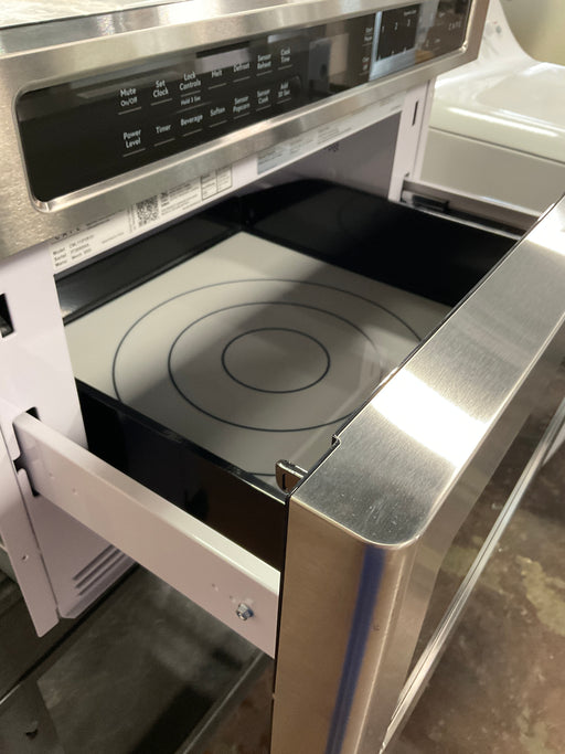 • This easy open microwave extends like a cabinet drawer and sits under the counter for added convenience and easy access.