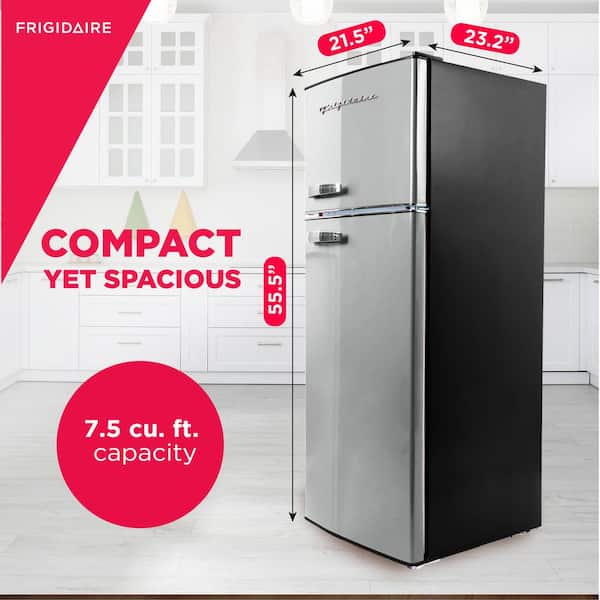 Your Frigidaire 7.5 cu. ft. Top-Freezer Refrigerator features upfront temperature controls that make it simple to regulate both the fresh food and freezer sections. Adjustable shelves provide flexibility to meet your food storage needs. Combines easy-to-use features with practical design to compliment any kitchen.