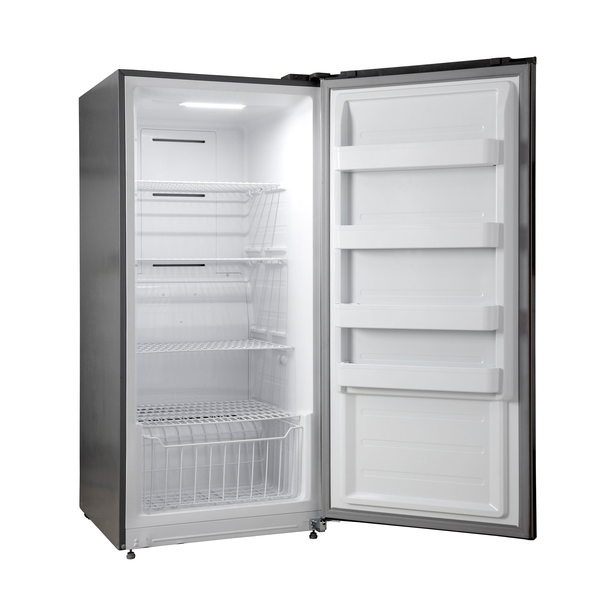 * The 28-inch Rizzuto Upright Convertible Freezer Right Swing * Convertible function transitions between refrigerator and freezer modes with ease for versatile storage * 13.8 cu.ft. storage capacity with 4 glass shelves and crisper drawer. * Four spill-proof glass shelves, with two being adjustable for flexible organization. * Large, full-width drawer easily removable for effortless cleaning. * High-efficiency LED lighting ensures uniform illumination, making every corner visible and preventing food spoilage.