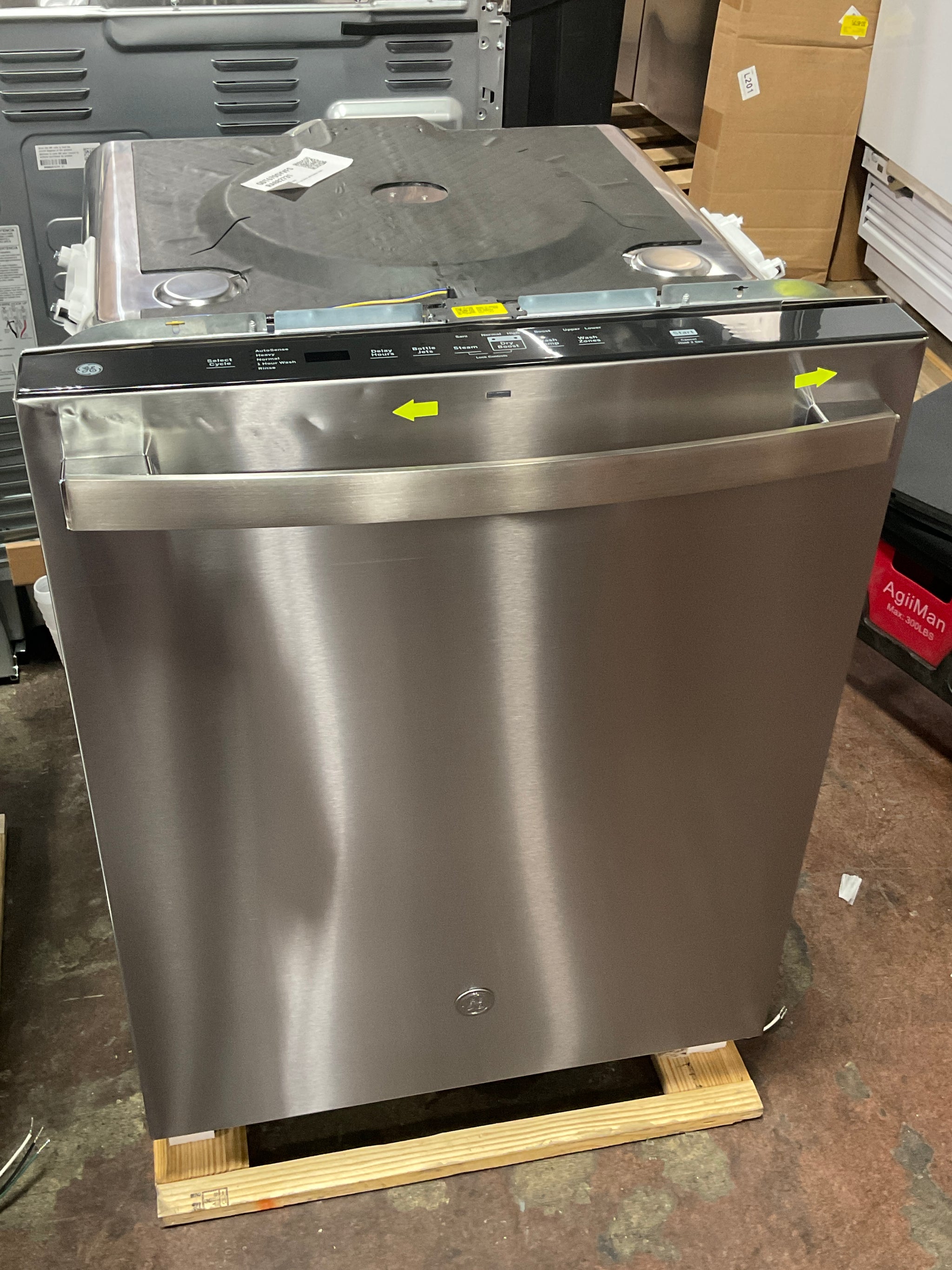 This unit is a Scratch & Dent. Store photographs were taken, and scratches & dents were marked by yellow pointers.