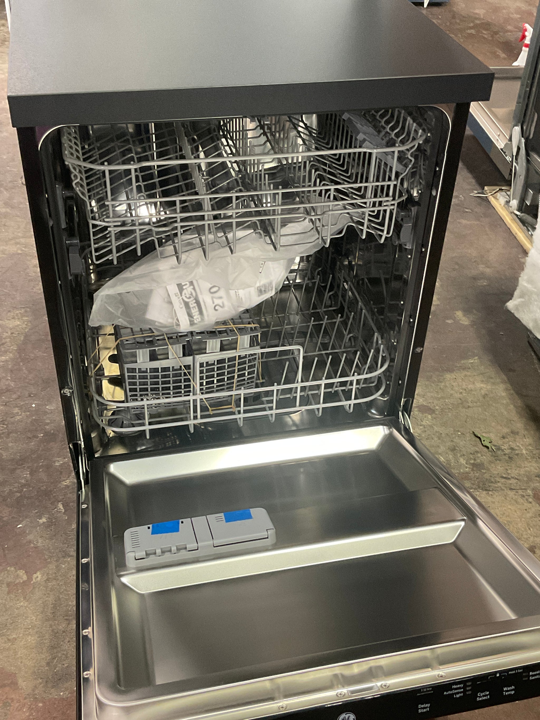 {"APPEARANCE":{"Color Appearance":"Black","Decorative Laminate Wood Top":"Black","Door Appearance":"Standard door","Door Style":"Full-Length Flat Door","Handle":"Pocket Handle","Handle Color":"Black","Handle Design":"Recessed","Installation":"Portable","Side Color":"Black"},"ECONOMICAL / QUIET":{"Door Insulation":"InsulationMastic","Motor Type":"Single Speed","Outer Wrap":"U-BlanketFull metal case","Quiet Features":"Sealed Toe Kick","Quiet Package":"54 dBA"},"FEATURES":{"Connected Capabilities":"Amazon AlexaIFTTTThe Google AssistantSonos","Control Type":"Top Controls4 PushbuttonsFully Integrated Electronic","Dishwasher Control Features":"3 Digit Countdown Display with 1 \"Clean\" light / 1 \"Sanitized\" light Cycle Progress IndicatorsCycle Progress IndicatorsAudible End-of-Cycle SignalCycle CountdownLast Cycle Memory","Dishwasher Cycles":"AutoSenseHeavy WashLight Wash","Dishwasher Drying Features":"Condensate Dry","Dishwasher Options":"Child LockDelay Start 1-12 Hr.Sani (Certified to NSF Standard 184)Start/ResetTempBoost","Dispenser":"Rinse Aid with Indicator and Adjustment","Latch":"Center Pull","Leveling System":"4 swiveling casters","Lower Rack":"Nylon","Number of Cycles":"3","Number of Options":"5","Number of Place Settings":"12","Product Type":"Portable","Rack Color":"Gray","Rack Features":"1 Plastic Utility Shelf - Upper2 Piece Silverware Basket with Cell CoversBall-Tipped Tines","Racking Material":"Nylon","Sensor":"Clean Sensor","Style":"Portable","Tub and Door Liner":"Stainless Steel","Upper Rack":"AdjustableNylon","Wash Arms":"2 with Upper Nozzle","Wash System Features":"Automatic HotStartAutomatic Temperature ControlDual PumpFlood Control SystemPiranha™ Hard Food Disposer","Wash System":"3-LevelStandard","Water Filtration System":"3-Stage Manual Clean Filtration","WiFi Connect":"Optional (Requires part no. PBX23W00Y1)"},"POWER / RATINGS":{"Electrical Requirements":"120V ; 60 Hz ; 8.9 A","Energy Consumption (kWh/year)":"240","Hertz":"60","Power Connection":"Power Cord - Included","Watts":"1068"},"WARRANTY":{"Labor Warranty":"Limited 1-year entire appliance","Parts Warranty":"Limited 1-year entire appliance","Warranty Notes":"See written warranty for full details"},"WEIGHTS & DIMENSIONS":{"Approximate Shipping Weight":"177 lb","Cabinet Width":"24 in","Depth with Door Open":"25 1/8 in","Depth Without Handle":"25 3/8 in","Height w/ Legs Retracted - Minimum Height":"36 in","Height w/Legs Extended - Maximum Height":"36 in","Net Weight":"147 lb","Overall Depth":"25 3/8 in","Overall Depth with Handle":"25.375","Overall Height":"36 in","Overall Width":"23 5/8 in"}}