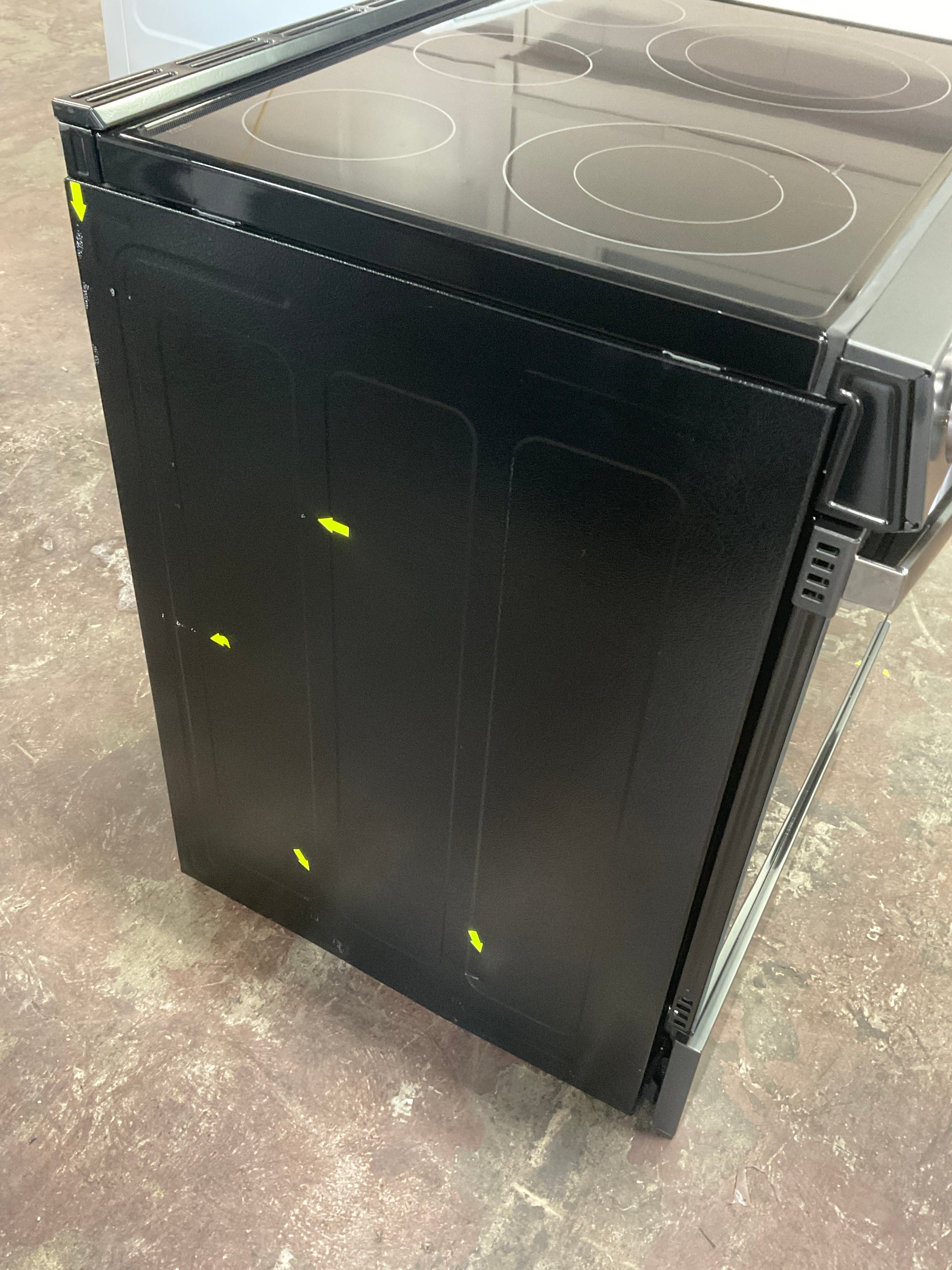This unit is a Scratch & Dent. Store photographs were taken, and scratches & dents were marked by yellow pointers.