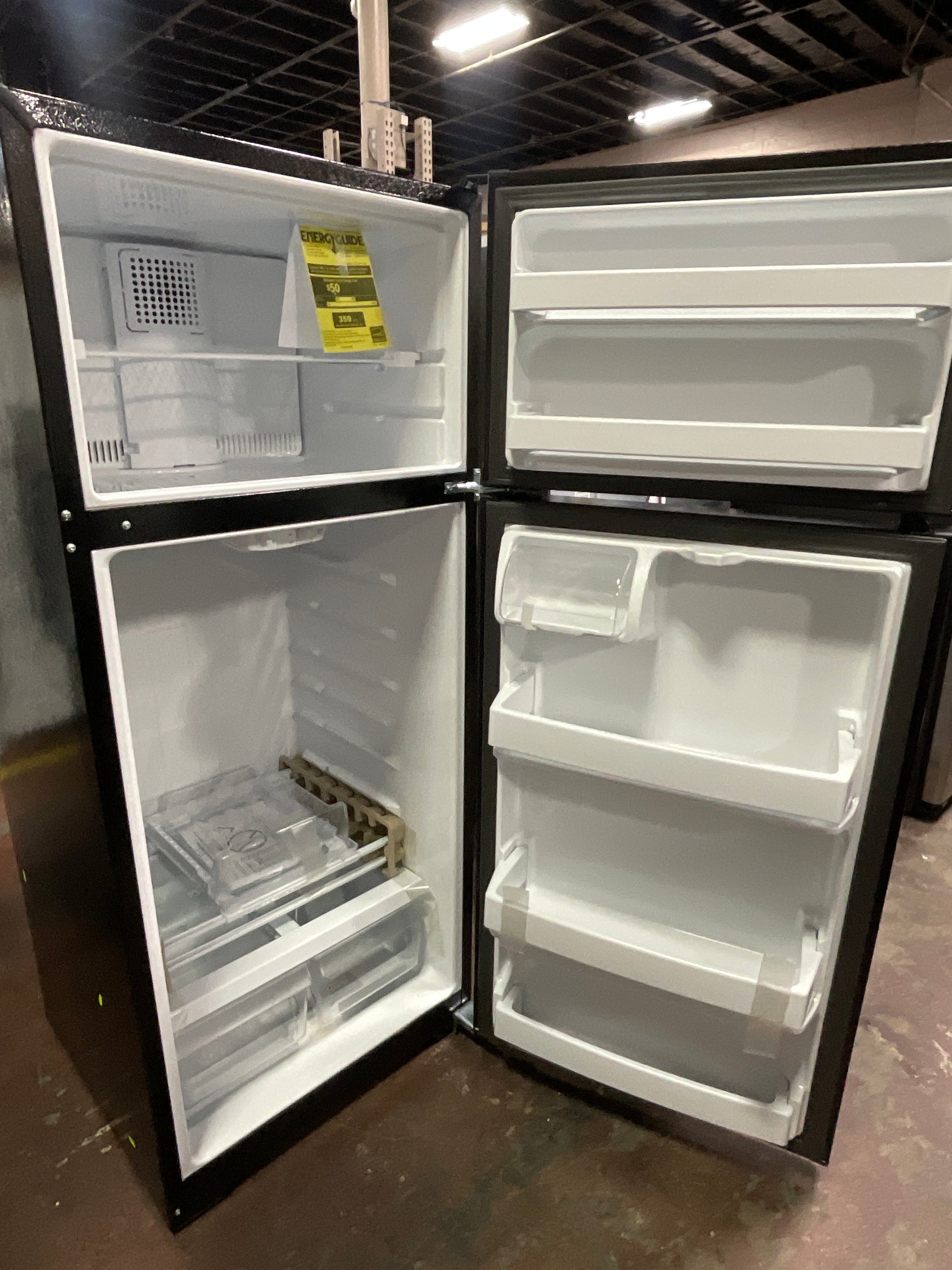 {"ACCESSORIES":{"Optional Icemaker Kit":"IM4D"},"APPEARANCE":{"Case Color":"Black","Coil-Free Back":"Yes","Color Appearance":"Black","Door Stops":"Yes","Door Swing":"Reversible Hinges","Exterior Design":"Textured Rounded Doors","Handle":"Smooth","Handle Color":"Black","Textured Steel Case":"Color Matched"},"CAPACITY":{"Freezer Capacity":"4.04 cu ft","Fresh Food Capacity":"13.49 cu ft","Total Capacity (cubic feet)":"17.50 cu ft"},"FEATURES":{"Control Type":"Upfront Temperature Controls","Defrost Type":"Frost Free","Exterior Style":"Free-Standing","Freezer Cabinet Shelves":"1 Adjustable Wire","Freezer Door Shelves":"2 Fixed","Freezer Features":"1 Adjustable ShelfSpillproof Freezer Floor","Fresh Food Cabinet Drawers":"2 Clear1 Half-Width Deli Drawer","Fresh Food Cabinet Shelves":"3 Total2 Glass2 Full-Width2 Adjustable1 Glass Drawer Cover","Fresh Food Door Features":"Gallon StorageDairy Compartment","Fresh Food Door Shelves":"3 Fixed (2 with Gal. Storage)","Fresh Food Features":"Interior Lighting - LED","Icemaker":"Optional (IM4D Ready)","Leveling System":"2 Point Front Adjustable","OU Certified":"No","Performance Features":"Easily Removable Door GasketsNever Clean Condenser","Product Type":"Top Freezer Refrigerator","Refrigerant Type":"R600a","Sabbath Mode":"Yes","Temperature Display":"Internal Analog","Temperature Management Features":"Air Tower"},"POWER / RATINGS":{"Energy Consumption (kWh/year)":"359","Volts/Hertz/Amps":"120v; 60Hz; 15A"},"WARRANTY":{"Labor Warranty":"Limited 1-year entire appliance","Parts Warranty":"Limited 1-year entire appliance","Warranty Notes":"See written warranty for full details"},"WEIGHTS & DIMENSIONS":{"Approximate Shipping Weight":"184 lb","Back Air Clearances":"2 in","Case Depth Without Door":"26 3/4 in","Depth with Door Open 90°":"57 in","Depth Without Handle":"30 1/2 in","Height to Top of Case":"66 7/8 in","Height to Top of Hinge":"67 3/8 in","Net Weight":"165 lb","Overall Depth":"32 5/8 in","Overall Height":"67 3/8 in","Overall Width":"28 in","Side Air Clearances":"3/4 in","Top Air Clearances":"1 in","Width w/Door Open 90 Degrees Incl. Handle":"30 5/8 in","Width w/Door Open 90 Degrees Less Handle":"28 1/2 in"}}