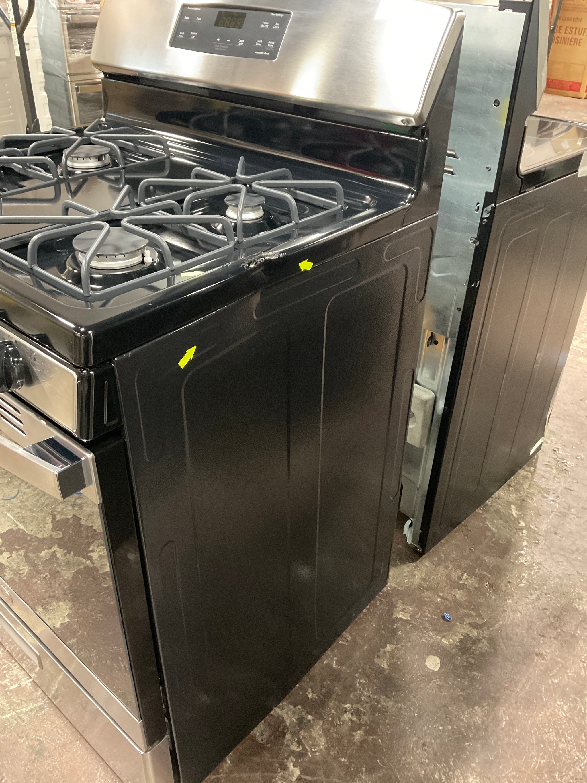 This unit is a Scratch & Dent. Store photographs were taken, and scratches & dents were marked by yellow pointers.
