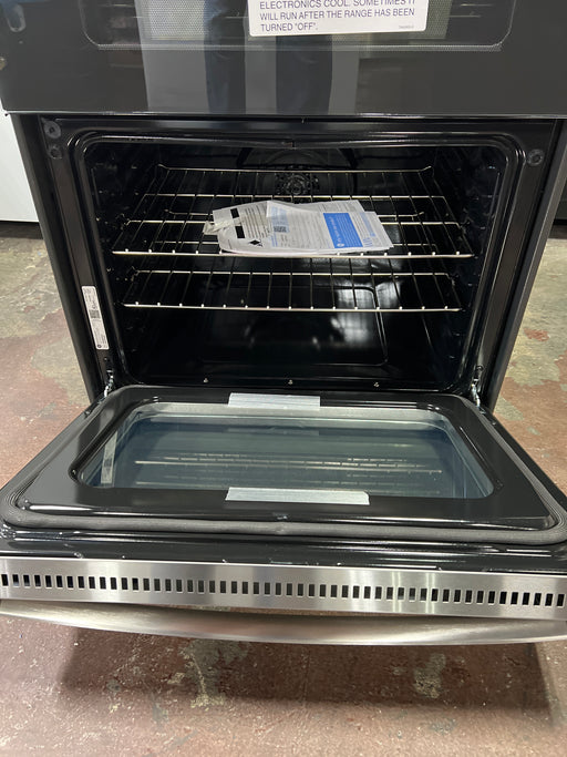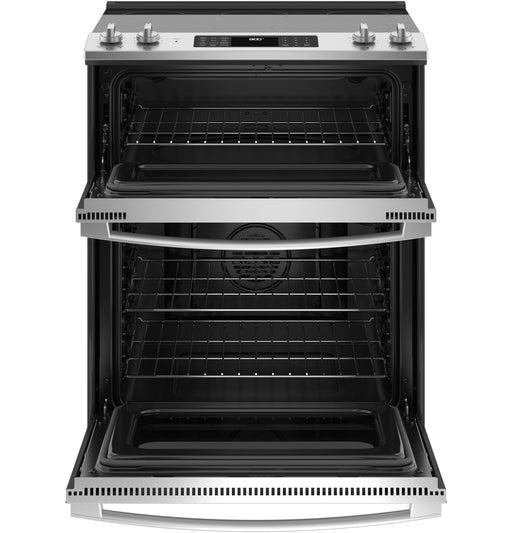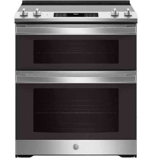 {"ACCESSORIES":{"Air Fry Basket":"Optional- JXAFTRAY1VSS","Trim Kit":"OptionalJXFILLR1BB"},"APPEARANCE":{"Color Appearance":"Stainless Steel","Control Knobs":"Stainless Steel Appearance","Handle Color":"Stainless Steel","Oven Door Features":"Big View Oven WindowClearview Glass DoorFull-Wrapped Stainless","Textured Steel Side Panels":"Yes"},"CAPACITY":{"Capacity (Cu. Ft.)":"2.2 Upper / 4.4 Lower","Total Capacity (cubic feet)":"6.60 cu ft"},"FEATURES":{"Configuration":"Double Oven Range","Control Location":"Front","Control Type":"Digital Temperature DisplayElectronicTouchpads","Cooking System":"True Convection","Cooking Technology":"Traditional Upper; True Convection Lower","Cooktop Burner Type":"RadiantSmoothtop","Cooktop Surface":"Black Ceramic Glass","Cooktop Type":"Radiant Smoothtop","Dual Ring Burners":"Yes","Element - Center":"6\" 100W Warming Zone","Element - Left Front":"9\"/6\" 3100W Power Boil","Element - Left Rear":"6\" 1200W","Element - Right Front":"12\"/9\" 3000W","Element - Right Rear":"6\" 1200W","Fuel Type":"Electric","Heating Element \"ON\" Indicator Light":"1","Hot Surface Indicator Lights":"1","Interior Oven Light":"2 Halogen (Upper)1 Halogen (Lower)","Melt Setting":"Yes","OU Certified":"No","Oven Cleaning Type":"Steam Clean","Oven Control Features":"Audible Preheat SignalHi / Low BroilOven \"ON\" LightCertified Oven Kosher SeparationAuto Oven Shut-Off with OverrideAuto Recipe ConversionSabbath ModeControl Lock CapabilityConvection BakeDelay Bake Option (Time Bake)Electronic Clock & Kitchen TimerFast Preheat","Oven Cooking Modes":"No Preheat Air Fry","Oven Features":"8-Pass Broil Element (Upper)6-Pass Broil Element (Lower)Hidden Bake (Upper and Lower)","Oven Interior":"Black","Oven Rack Features":"3 Oven Racks","Oven Rack Positions (Single or Upper/Lower)":"2 / 7","Power Boil Burner":"Yes","Product Type":"Slide-In Double Oven","Sabbath Mode":"Yes"},"POWER / RATINGS":{"Amp Rating at 208V":"40","Amp Rating at 240V":"40","Bake Wattage":"2650W Upper / 2650W Lower","Broiler Wattage":"3000W Upper / 3600W Lower","Convection Wattage":"1500W","Electrical Requirements":"208/240V ; 60Hz ; 40A","Hertz":"60","KW Rating at 208V":"11.9","KW Rating at 240V":"15.8"},"WARRANTY":{"Labor Warranty":"Limited 1-year entire appliance","Parts Warranty":"Limited 1-year entire appliance","Warranty Notes":"See written warranty for full details"},"WEIGHTS & DIMENSIONS":{"Approximate Shipping Weight":"191 lb","Cabinet Width":"30 in","Depth with Door Open":"45.125 in","Depth Without Handle":"25.75 in","Height to Cooking Surface (in.)":"35.75 - 36.5","Height to Top of Rear Vent Trim":"36.5 in to 37.25 in","Net Weight":"170 lb","Oven Interior Dimensions (lower)":"24 x 17 1/2 x 18 1/4","Oven Interior Dimensions (upper)":"24 x 8-7/8 x 18","Overall Depth":"28.25 in","Overall Height":"36.5 in","Overall Width":"29.875 in"}}