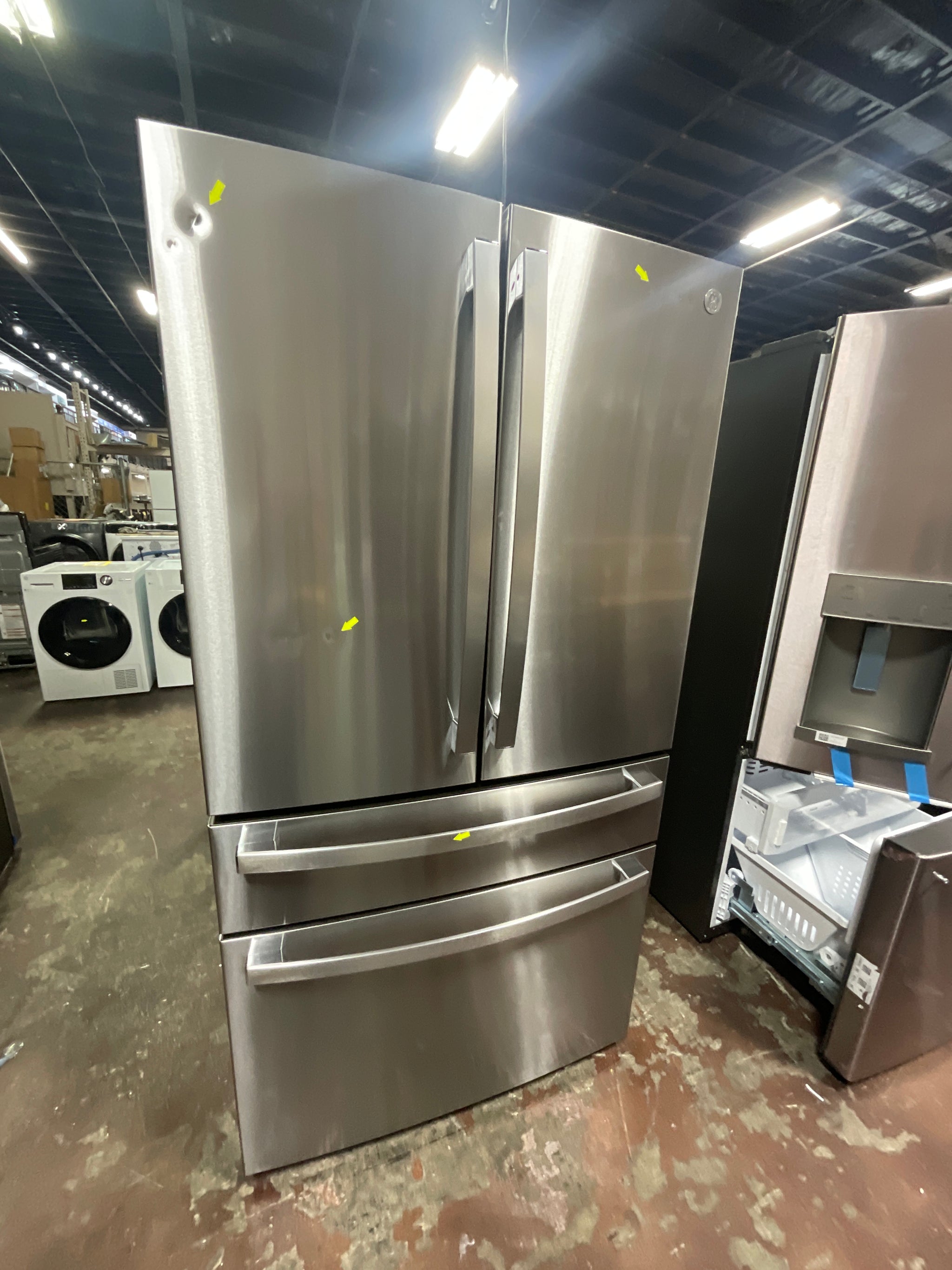 This unit is a Scratch & Dent. Store photographs were taken, and scratches & dents were marked by yellow pointers.
